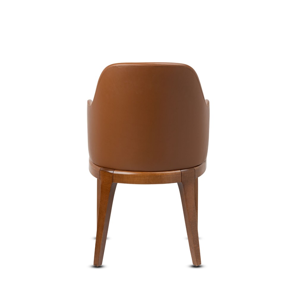 Ahşap ayaklar el işçiliği ile cilalanarak estetik bir görünüm kazandırılmıştır. 42 DNS yüksek yoğunluklu sünger dolgusu sayesinde formunu uzun yıllar korur. Silinebilir döşeme özelliği, restoran ve kafe gibi yoğun alanlarda temizlik kolaylığı sağlar.