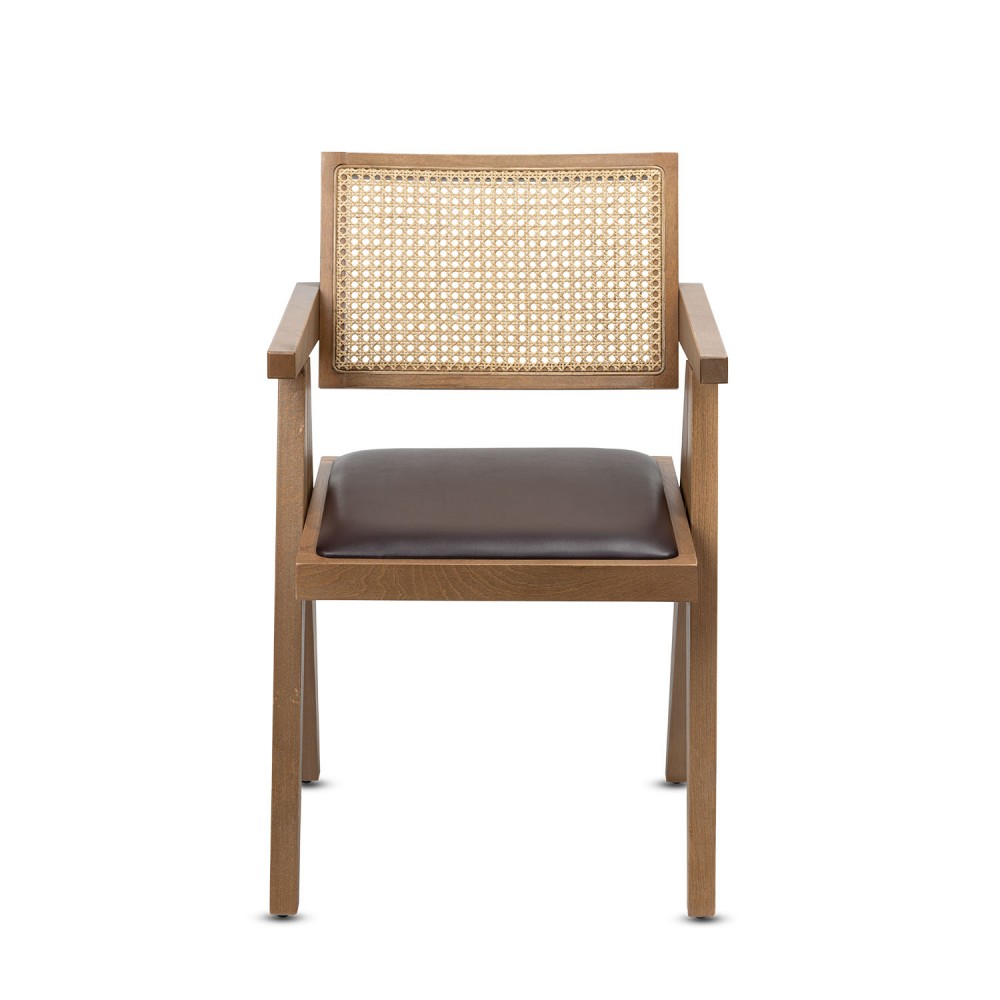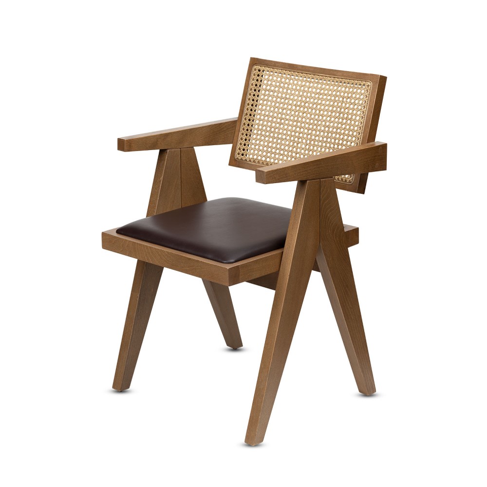 Verona Restoran Sandalyesi, klasik ve doğal tasarım çizgilerini bir araya getiren zarif bir modeldir. Masif ahşap iskeleti mekânlara sıcaklık katarken, sırt kısmındaki el işçiliği doğal hazeran detayı şık bir görsel etki yaratır. Kahverengi oturum döşemesi ise tasarıma kontrast bir derinlik kazandırır.