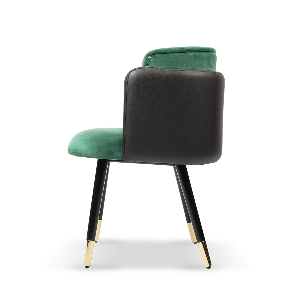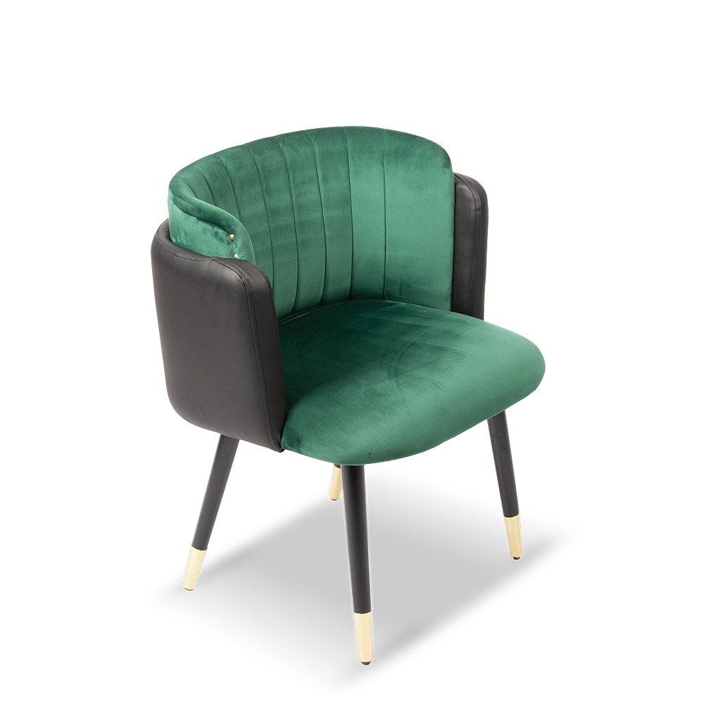 Restoran ve cafe dekorasyonunda kullanılan sandalyeler, mekânın ambiyansını belirler. Velora Restoran Sandalyesi, kadife döşemesi ve siyah deri yan kaplaması ile lüks bir görünüm sunar. Gold detaylı ayak uçları mekânınıza sofistike bir hava katar ve dikkat çekici bir şıklık oluşturur.