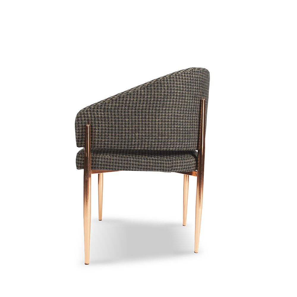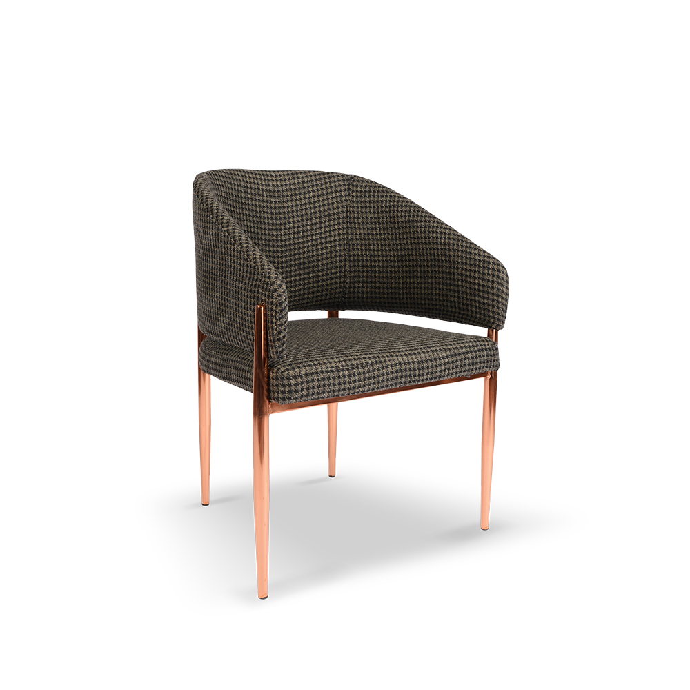 Restoran sandalyeleri, bir mekânın karakterini belirleyen en önemli unsurlardan biridir. Rosera restoran sandalyesi, bakır kaplama metal ayakları ve zarif kavisli sırt tasarımıyla mekânınıza sofistike bir görünüm kazandırır. Kumaşında kullanılan özel desen, klasik ve modern dekorasyonları birleştiren zamansız bir hava yaratır.