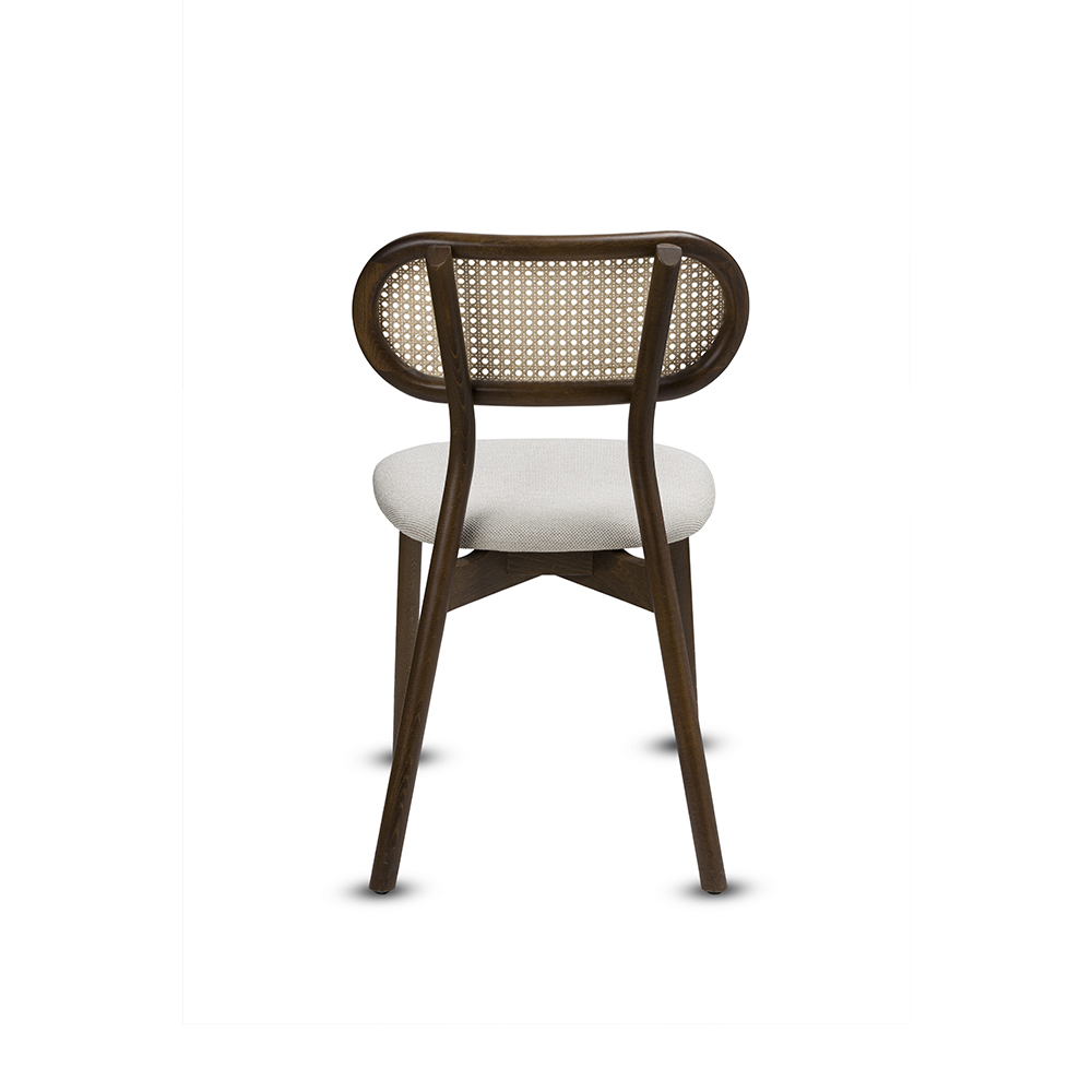 Masif ahşap iskeleti sayesinde yoğun kullanımda bile dayanıklıdır. Hafif kavisli sırt tasarımı ve dolgulu oturma yüzeyi misafirlerinize rahat bir oturum deneyimi sunar.