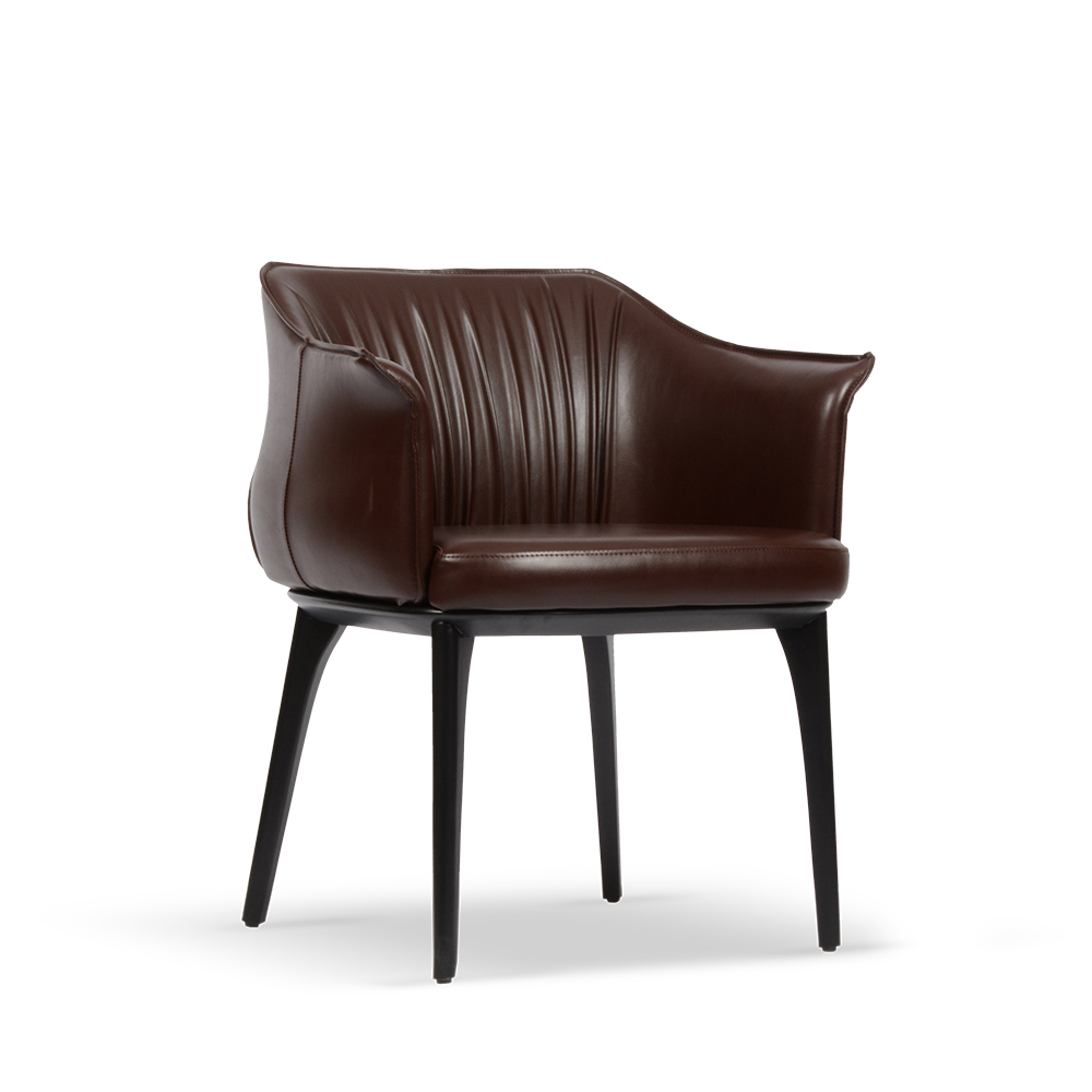 Restoran sandalyeleri, mekânın atmosferini belirleyen en önemli unsurlardan biridir. Brixton restoran sandalyesi, koyu kahverengi deri kaplaması ve siyah ahşap ayakları ile mekâna sofistike bir dokunuş yapar. Hafif kavisli kolları ve ergonomik sırt yapısı, kullanıcıya rahat bir oturum sağlar.