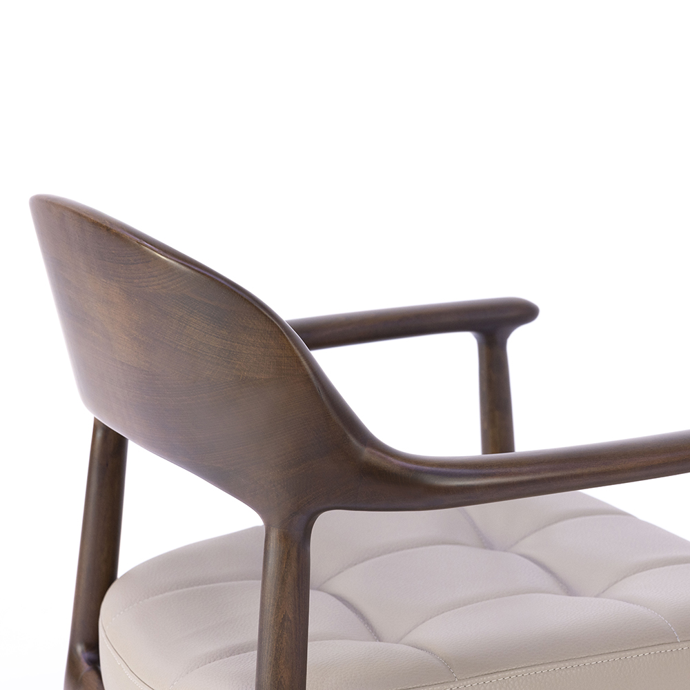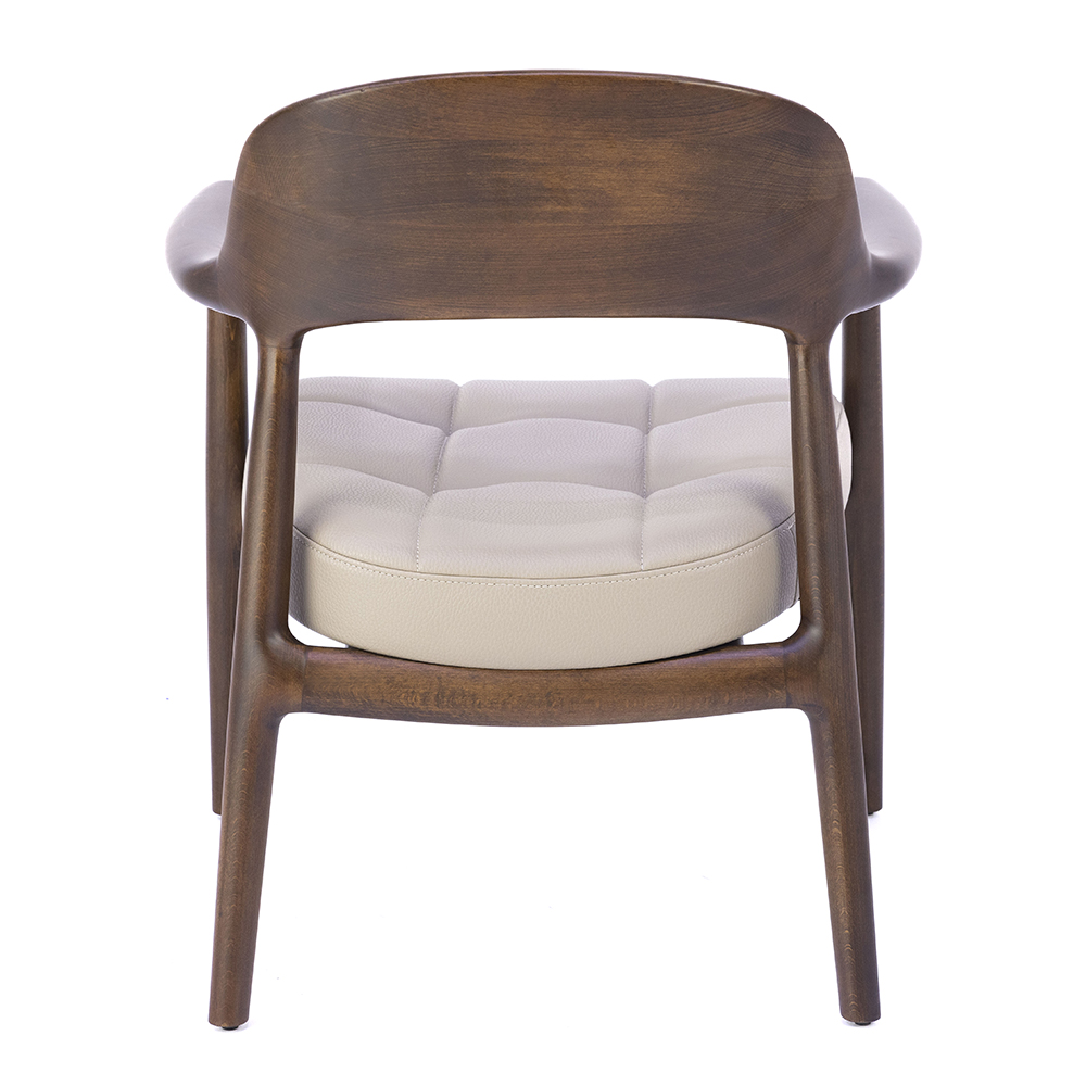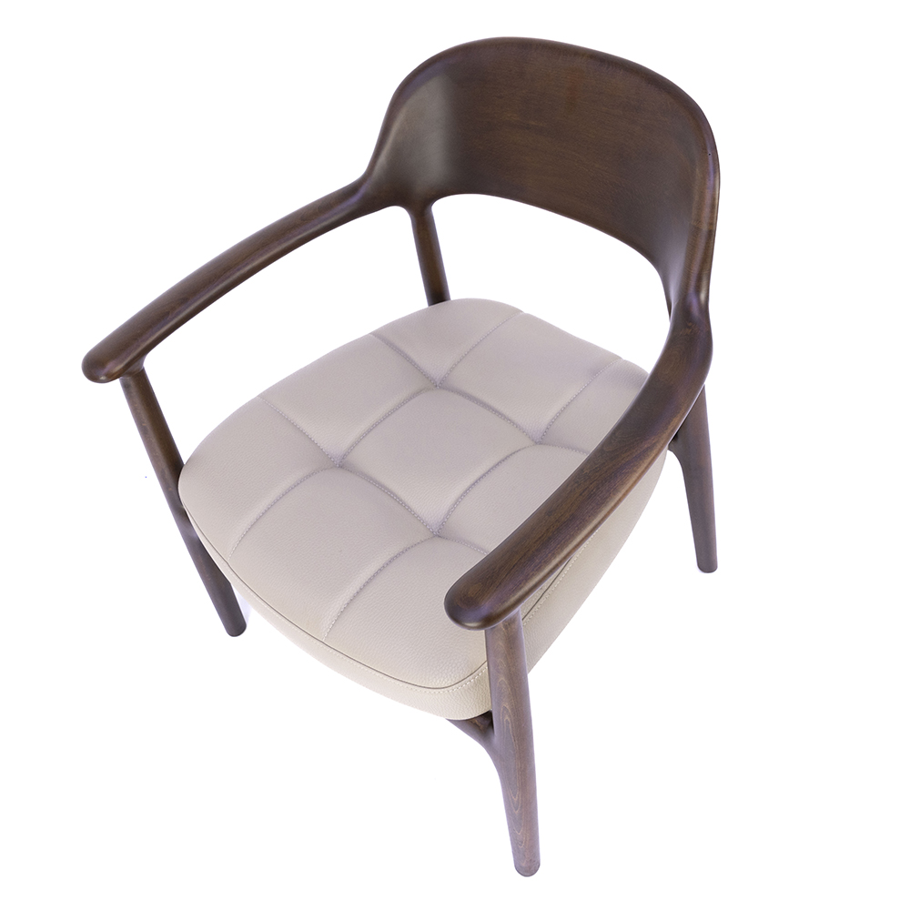 Pierra Restoran Sandalyesi, masif gürgen gövde ve dolgulu suni deri oturumla imal edilir. Kavisli kol yapısı, oturum ergonomisini destekleyerek uzun süreli kullanımda konfor sağlar. Her birleşim noktası zıvana tekniğiyle güçlendirilmiş, yüzeyleri su bazlı cila ile korunmuştur.