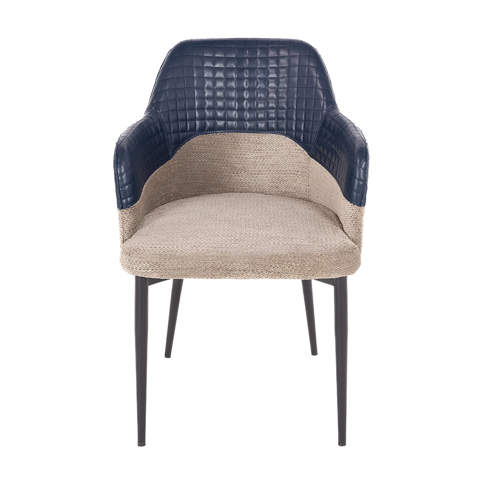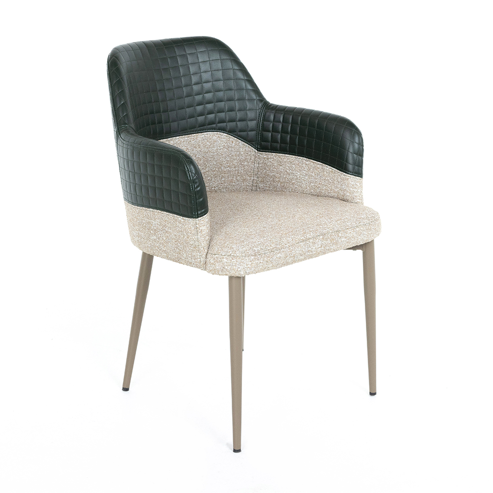 Velina Restoran Sandalyesi, üst bölümde kapitone dikişli suni deri ve alt bölümde dokuma kumaş yüzeyle tasarlanmıştır. Metal ayak yapısı elektrostatik toz boya ile korunmuş, çizilmeye karşı direnç kazandırılmıştır. Geniş oturum alanı ve yumuşak sırt formu sayesinde konforu ön planda tutar.